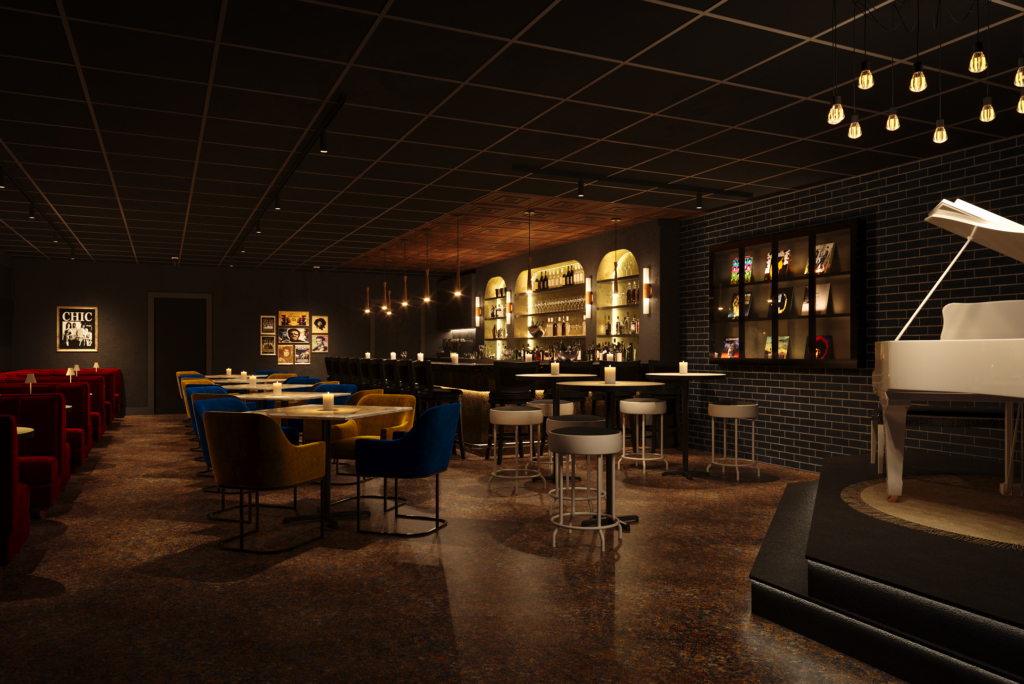2000 SF fitout of vacant building into a lively music and dining venue complete with a small commercial kitchen and full service bar.